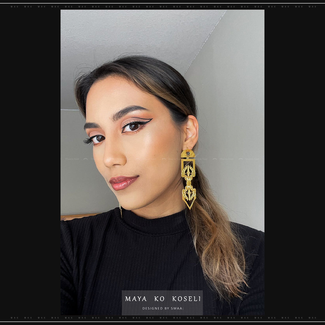 Beautifully handcrafted in brass and goldplated, Bajra tatva draws inspiration from Bajra, symbolizing spiritual power and enlightenment. Elegant and meaningful, these earrings offer a unique representation of culture and art.