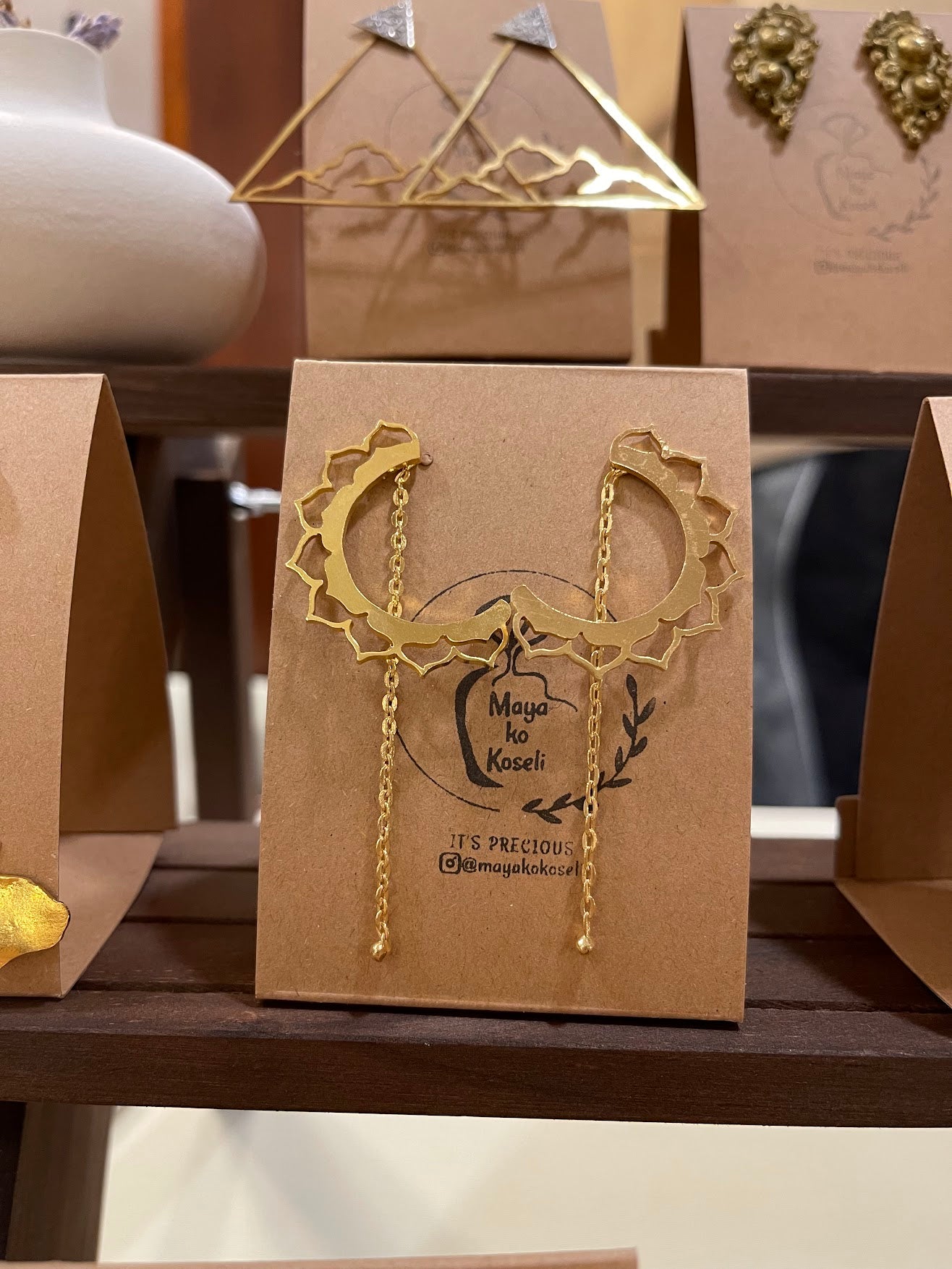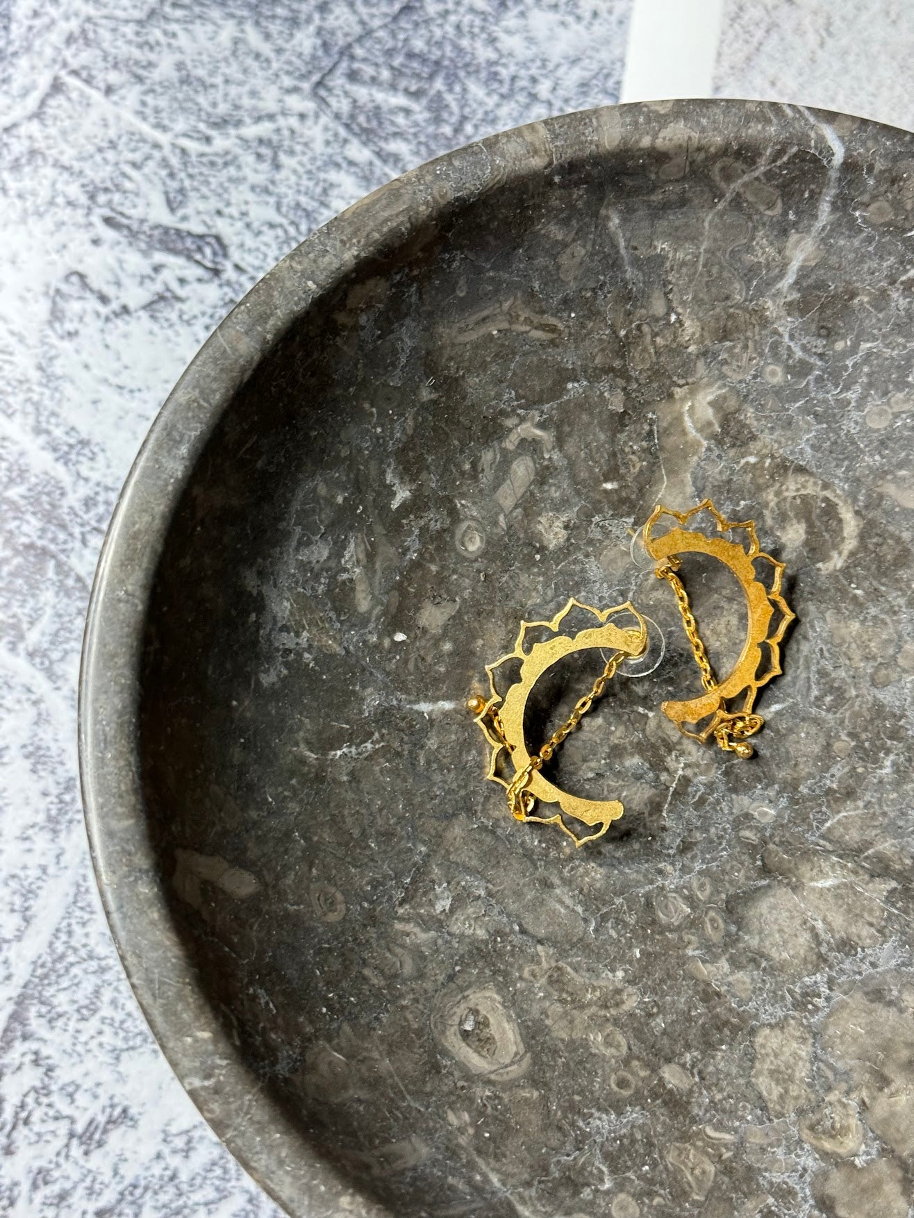 Delicately crafted, our half-flower drop earrings with petal detailing embody the quiet elegance of nature in bloom. Inspired by the gentle unfolding of petals, each piece reflects grace in its most subtle form. The long chain drop adds a fluid sense of movement, like a flower swaying softly in the breeze. Minimal yet mesmerizing, these earrings bring a hint of charm to any look — from everyday wear to special occasions. They’re where simplicity meets elegance, celebrating the beauty of understated design with a touch of heritage-inspired artistry.